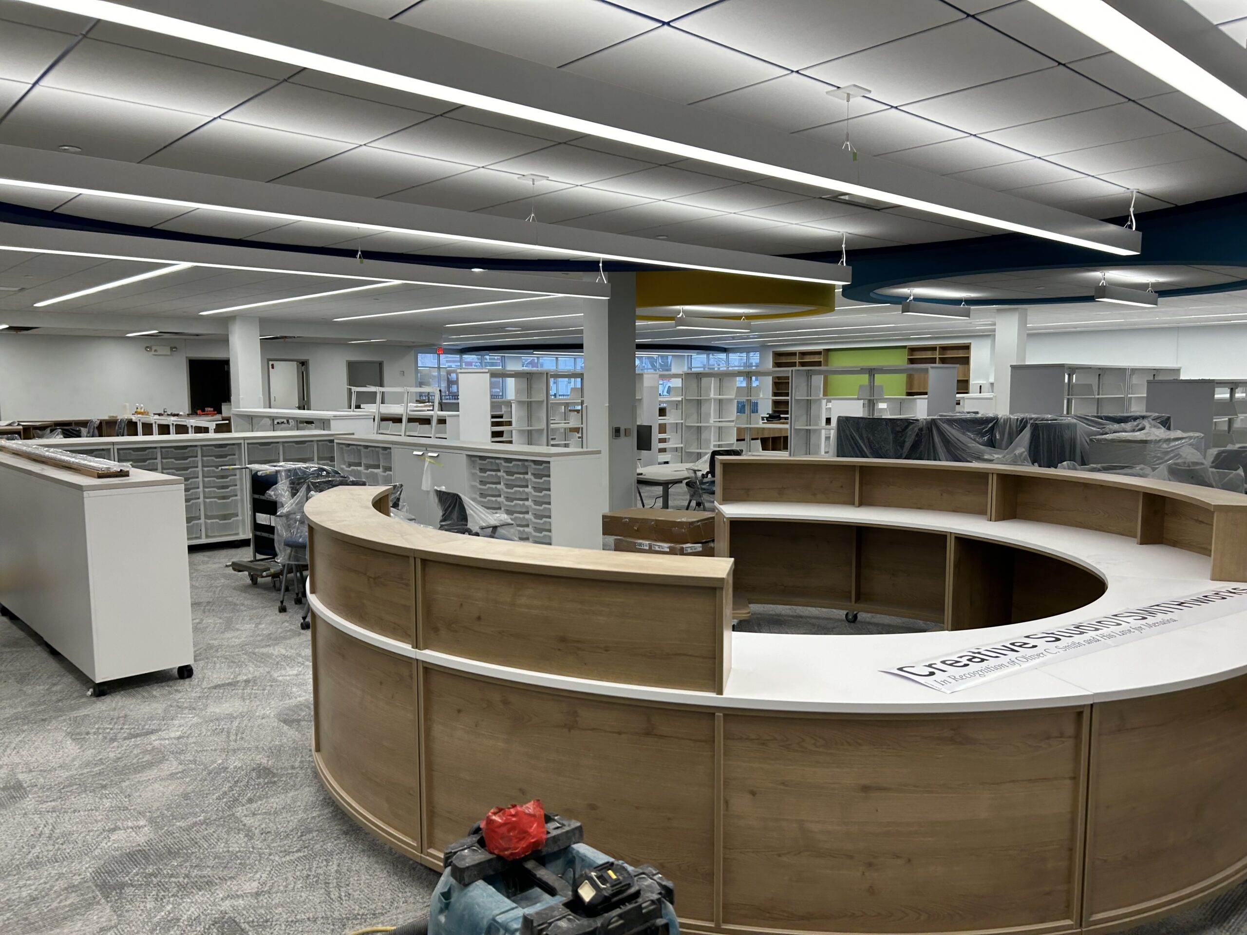 Having undergone a significant renovation, this 30,000-square-foot space now includes a variety of public-use areas, such as a kitchen designed for educational purposes, a state-of-the-art makerspace featuring a laser engraver and residential water jet, a new children’s section, and three dedicated focus rooms.